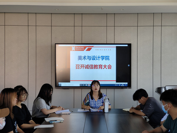 2022年6月28日,美术与设计学院分团委学生会在综合实训楼719召开本学期诚信教育动员大会。大会由团学办主任唐艳丽老师主持,辅导员李贺、学生会以及学院全体学生干部参会。