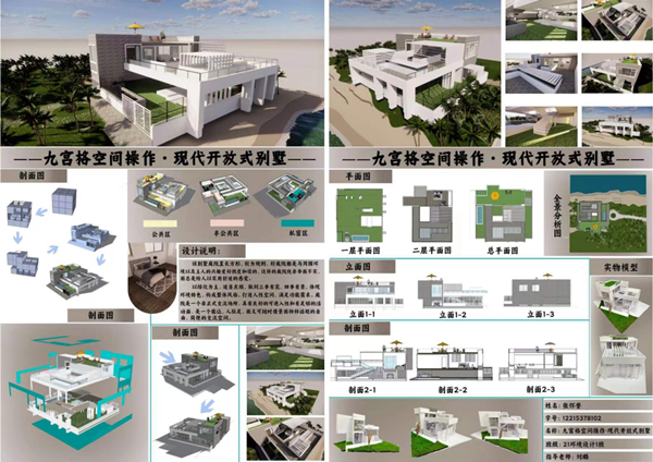建筑设计基础课程首先通过了解建筑的概念、基本属性和分类而初识建筑。其次,通过三个阶段九宫格空间推演探讨了空间的限定、组织方式,以及建筑形式、功能与结构的契合关系的实现。最后,通过实体模型构建与最终方案推敲完成整体建筑设计。