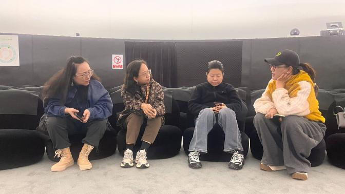 上午10时,访企团队参观“白日梦中心”核心功能区。吴院长提出打造展区特色的建议,荣梅与企业负责人沟通展示活动合作办法。在球幕影院,技术人员展示特色影片,双方洽谈中心运营计划及人才需求。景区总经理介绍游客量和消费趋势,企业负责人张昕毅表示,中心急需兼具艺术创意与市场洞察力的复合型人才,尤其在绘画、文创产品开发、空间场景设计领域存在缺口。双方围绕“企业用人机制与毕业生能力匹配度”展开讨论,张总强调企业更看重学生的“跨界能力”,即能否将传统工艺与现代科技结合。学院计划在实践教学中加入丹霞和白日梦中心相关的导向设计,通过“企业命题-师生共创-孵化应用”模式,将中心实际项目纳入毕业设计、创作课题或实践作业。