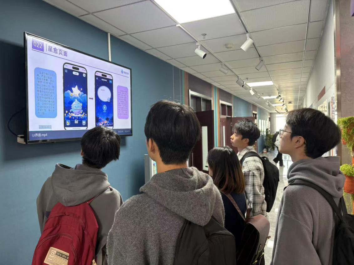 近日,美术与设计学院2023级视觉传达设计专业《UI用户界面设计》课程作业展在文昌楼七楼长廊数字屏展出,本次课程展以“设计解决需求,界面传递温度”为核心,集中呈现了5组学生团队围绕不同生活场景打造的UI设计作品,覆盖非遗传播、旅行社交、饮食健康、情绪疗愈、宠物关怀五大领域,既展现了学生的设计创意,更体现了“以用户为中心”的设计思维的落地实践。