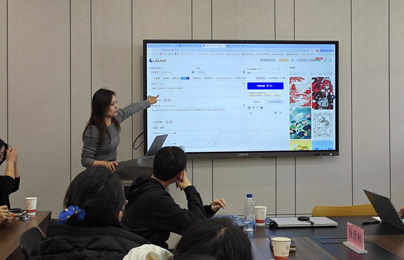 实践环节中,西北师范大学彭昕老师结合案例演示LiblibAI智能设计平台,展现技术赋能效率提升;兰州大学朱雅鑫老师分享材料与设计交叉创新成果,拓展学科边界;北理工研究生吴龙洋系统展示AI在设计调研、创意生成与方案优化中的全流程应用,突出智能工具在提质增效与模式创新中的关键作用。