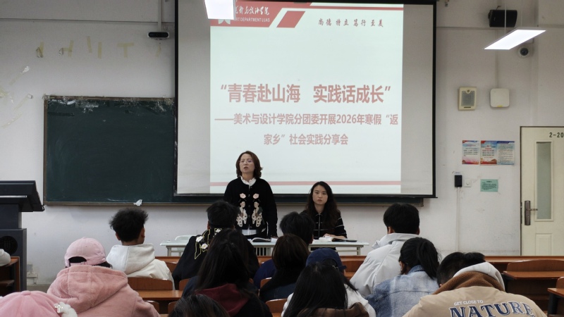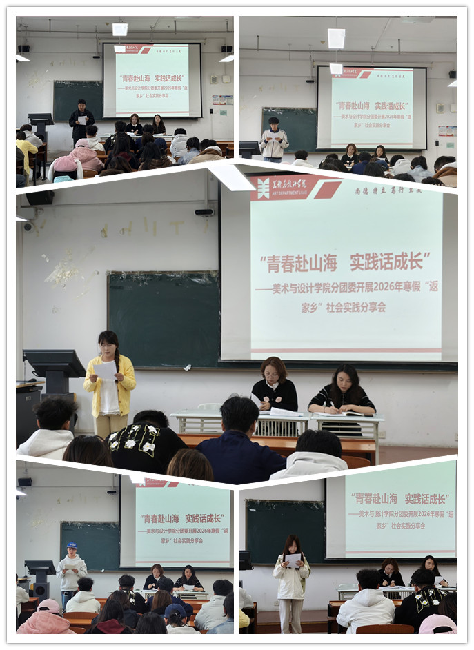 为引导青年学子在实践中增长才干、砥砺品格,3月10日,美术与设计学院于强能楼202教室开展2026年寒假“返家乡”社会实践分享活动。学院分团委书记唐艳丽,辅导员孙晓桐老师参会,各班级班长、团支书、学习委员、心理委员以及学生会全体干部共同参与,围绕“青春赴山海 实践话成长”主题,交流实践感悟,共话青年担当。