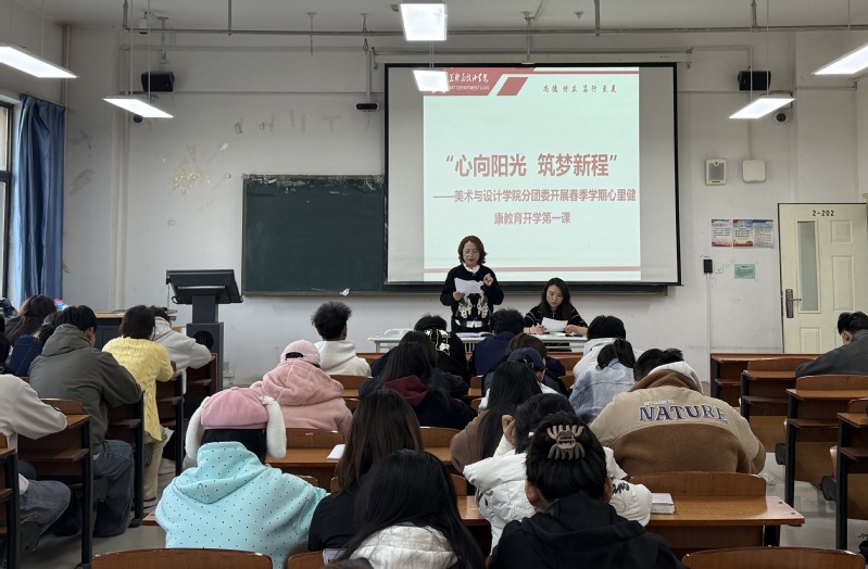 为帮助同学们快速调整状态、以积极心态迎接新学期,筑牢心理健康与思想行为双重防线,美术与设计学院分团委、“心海导航”辅导员名师工作室,以“心向阳光,筑梦新程”为主题,3月10日在强能楼202教室,开展2026年春季学期心理健康教育开学第一课。学院团学办主任唐艳丽老师主持、辅导员孙晓桐以及全体学生干部参会。
