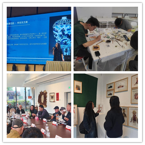 在景德镇陶博城国际研学中心,师生参与两场陶瓷驻场创作营实践活动,完成的新彩瓷板画、刻瓷作品创意新颖、技艺精湛,获得多所兄弟院校师生的高度认可与一致好评。荣梅老师面向多所院校学生开展公益讲座,介绍了景德镇陶瓷文化与青花、刻瓷等技艺,也分享了教学心得与专业成果;我校师生还积极参与高校学术研讨会,立足甘肃地域文化特色,分享陶瓷艺术地域特色教学与创作成果。师生同时参与华州皮影传承创新艺术展开幕式及学术研讨会,汲取多元传统艺术创新发展经验。