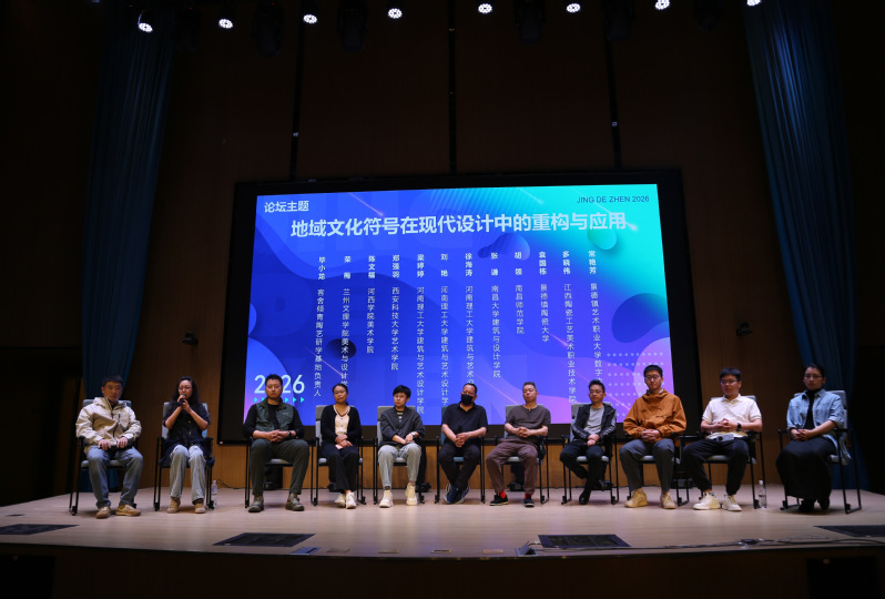 2026年4月18日,美术与设计学院绘画专业工艺美术方向赴景德镇开展专业考察实践教学期间,荣梅老师带领学生受邀参与了在景德镇陶博城国际研学中心举办的“地域文化符号在现代设计中的重构与应用”主题的论坛。本次论坛汇聚九所院校十一位教师、四所院校近两百名学生,共同围绕地域文化与现代设计融合发展展开深度交流研讨。