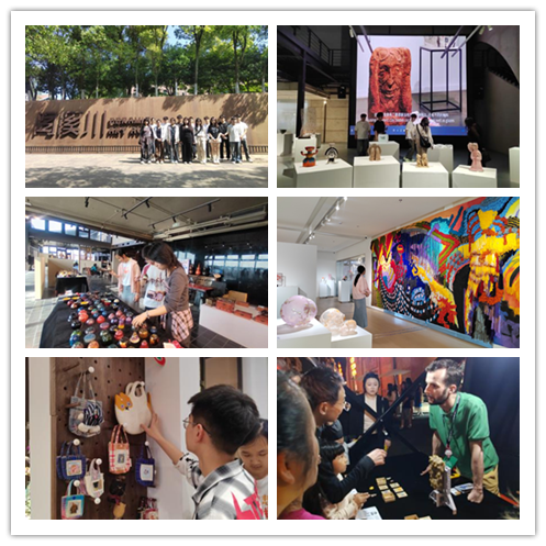 随后两天,师生实地走访雕塑瓷厂艺术文创街区、参观陶溪川文创街区春秋大集,与各国手工艺艺术家进行深入交流,了解各国特色手工艺及在各地区发展的形势。参观陶溪川美术馆、中央美院展厅、球磨美术馆、青湖美术馆等展示场馆,了解当代陶瓷艺术最前沿表现风格和技艺。通过参观“窑与作”艺术中心学习陶瓷以外羊毛毡、玻璃、大漆、木雕、竹编、精工、首饰设计、翻糖等工艺在景德镇的发展。通过调研手工艺市场运营模式、青年艺术创作者创新创业实践,明晰行业人才就业需求,为学生未来职业发展指明方向。